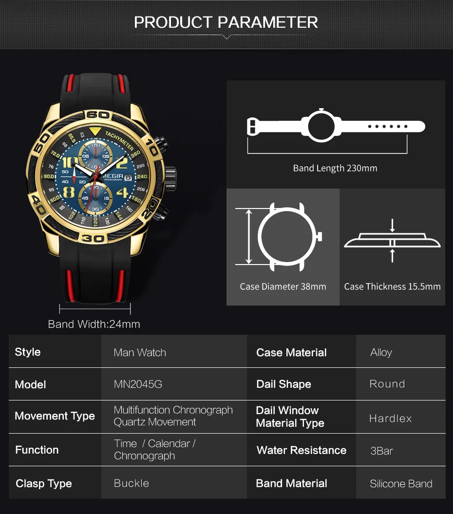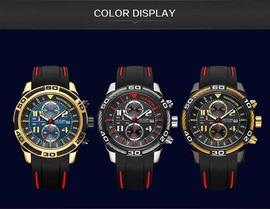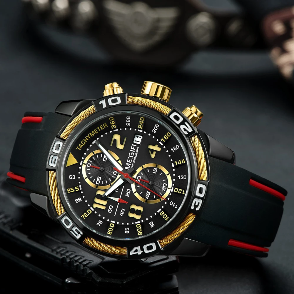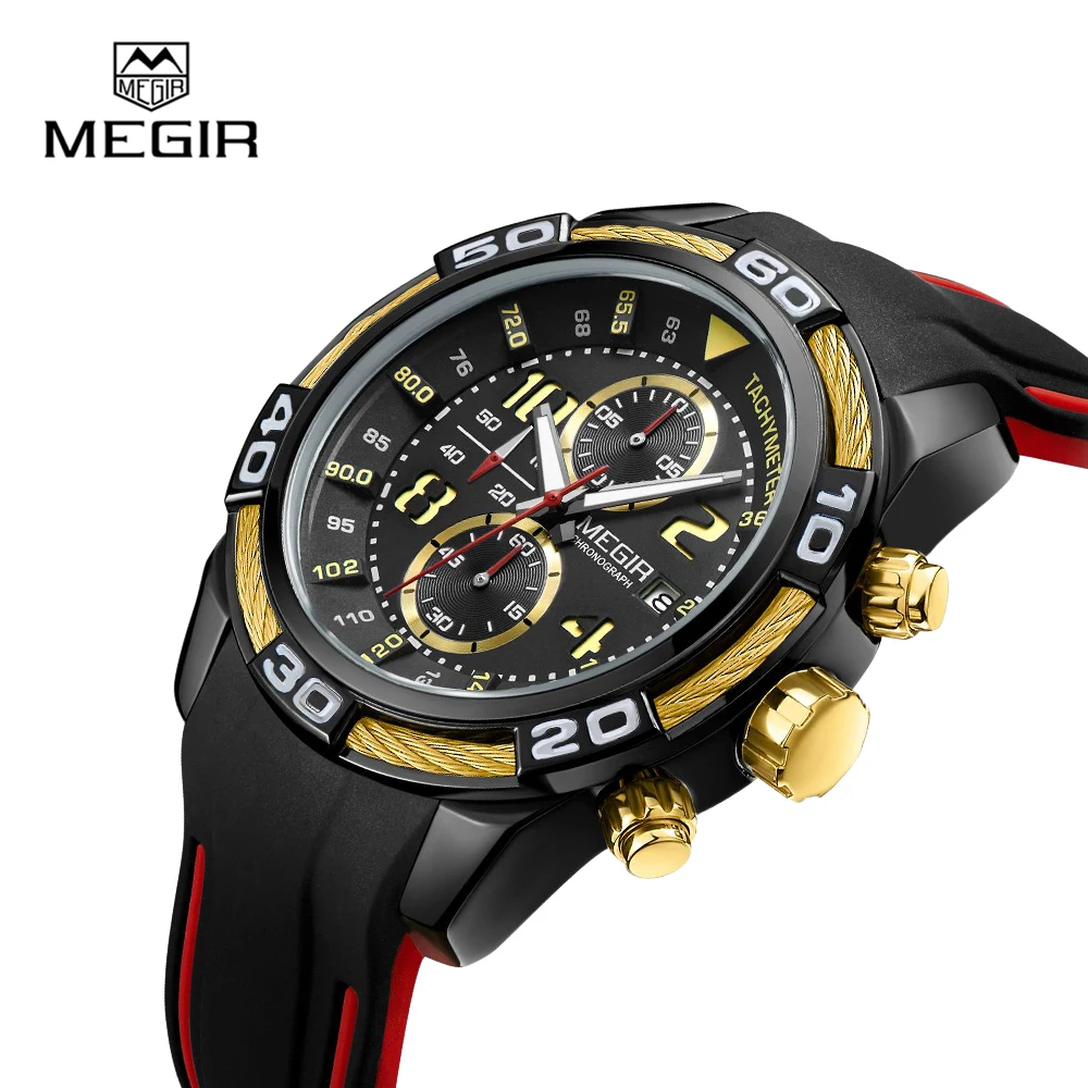 Relógio Masculino De Pulseira De Silicone, Á Prova De Água, Original, Marca Megir 2045, De Luxo!