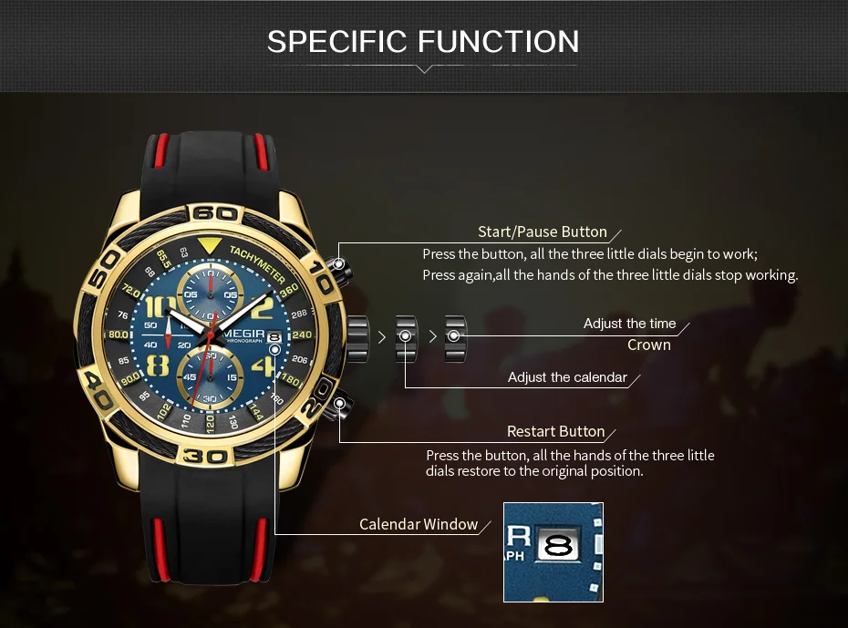 Observação/ões: Não é recomendado utilizar em mergulhos profundos, Apenas em superficiais! Quando estiver submerso em águas: Nunca aperte os botões, Ou tente acertar o horário! Isso fará entrar água em seu relógio!