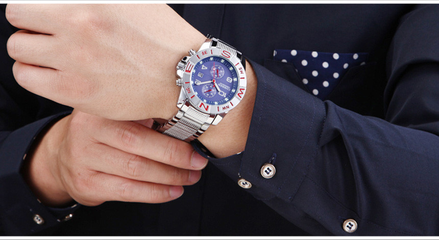 Relógio Masculino Importado De Aço, Cor Azul E Prata, Original