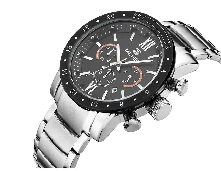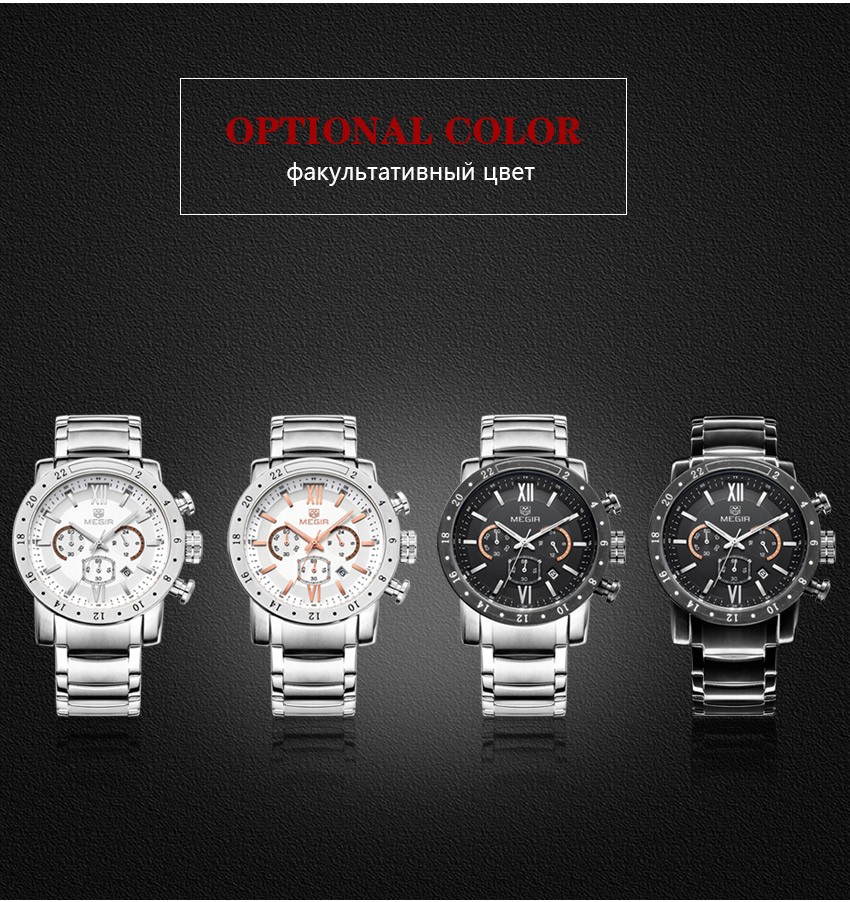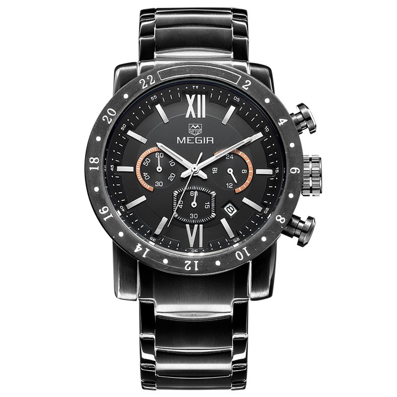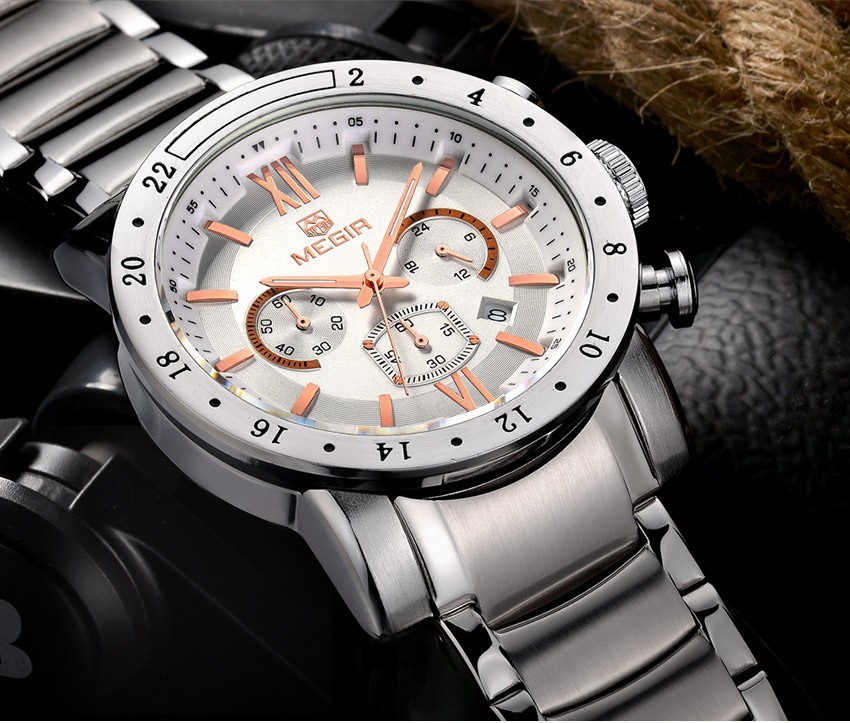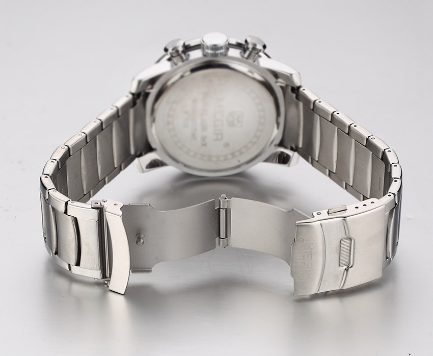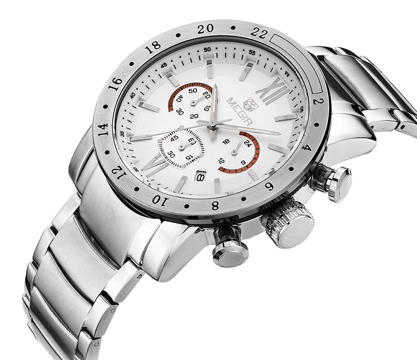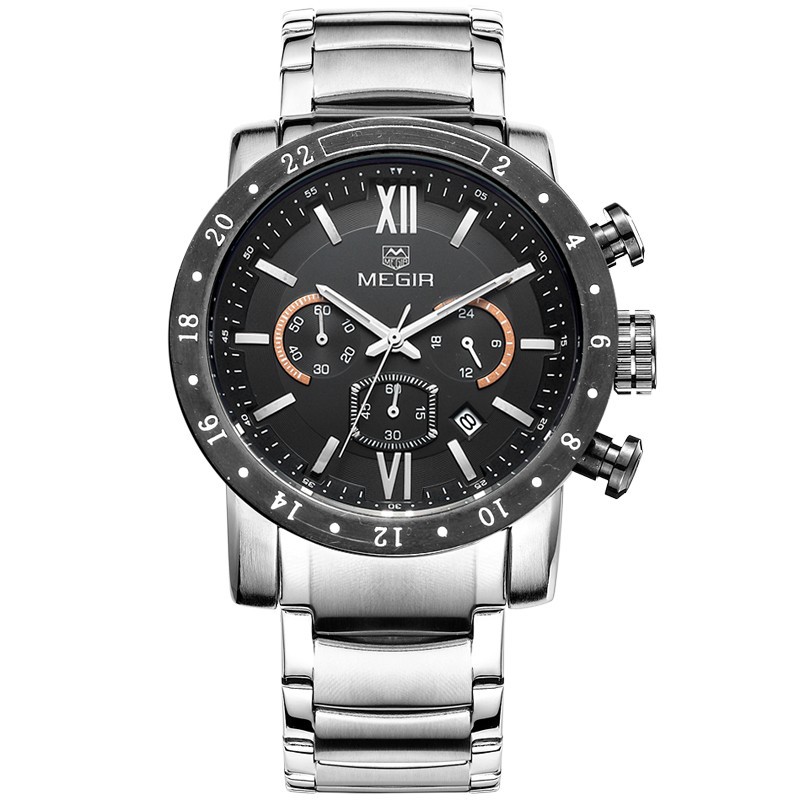Relógio Masculino Marca, MEGIR-3008G, Em Aço Inox, Chronograph, Calendário Inoxidável, Movimento De Quartzo