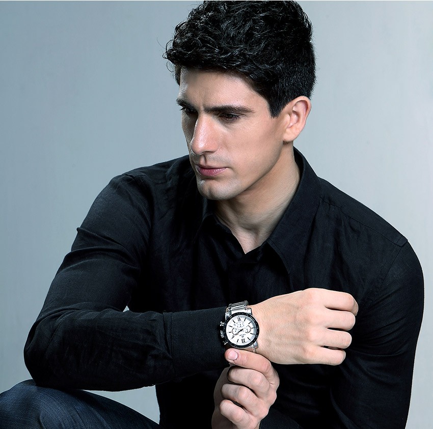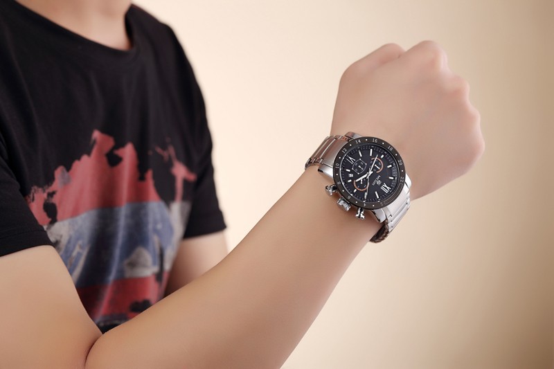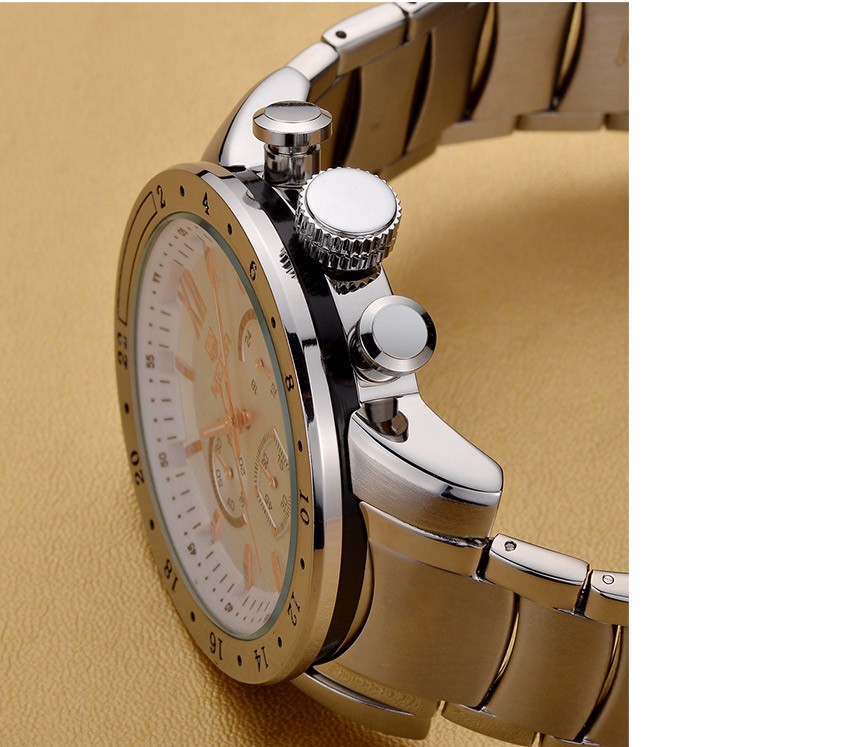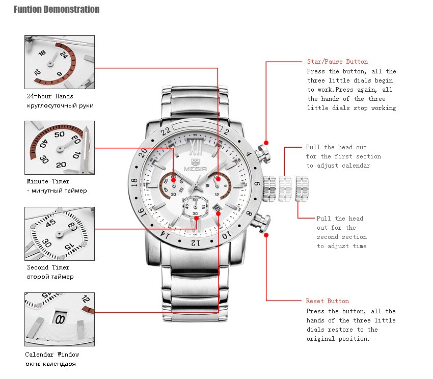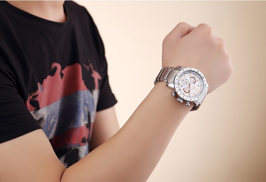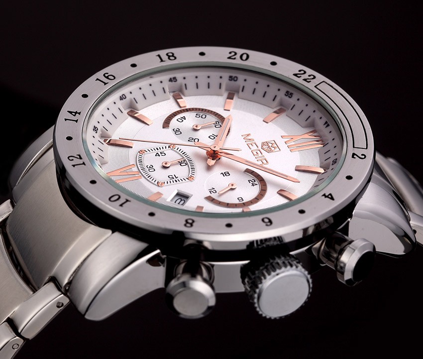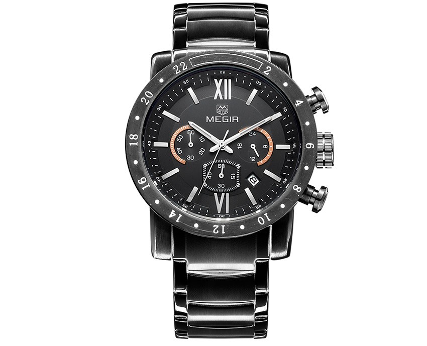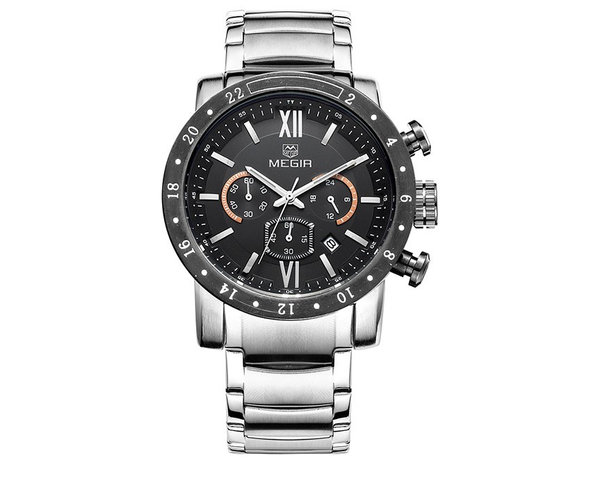 Relógio Masculino Marca, MEGIR-3008G, Em Aço Inox, Chronograph, Calendário Inoxidável, Movimento De Quartzo
