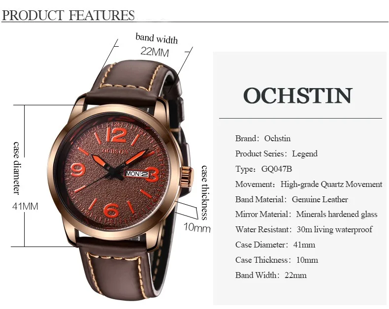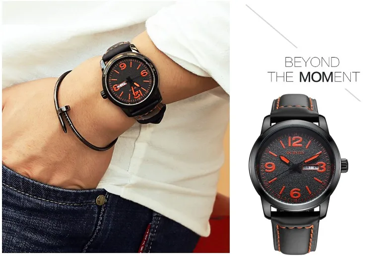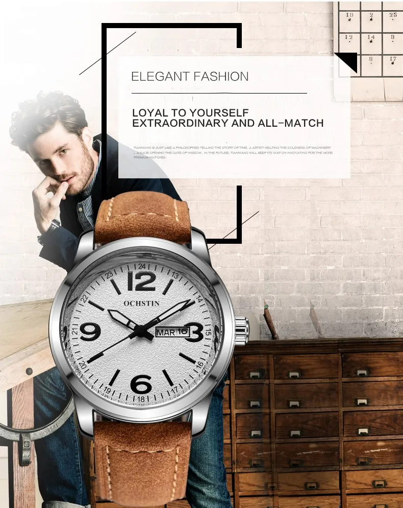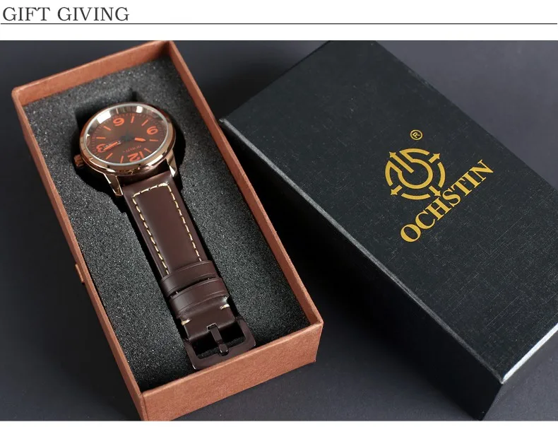 es Mannen OCHSTIN Mulheres Auto Data Relógio Dos Homens do Relógio com Pulseira de Couro Homens Reloj Mujer Marcas Famosas